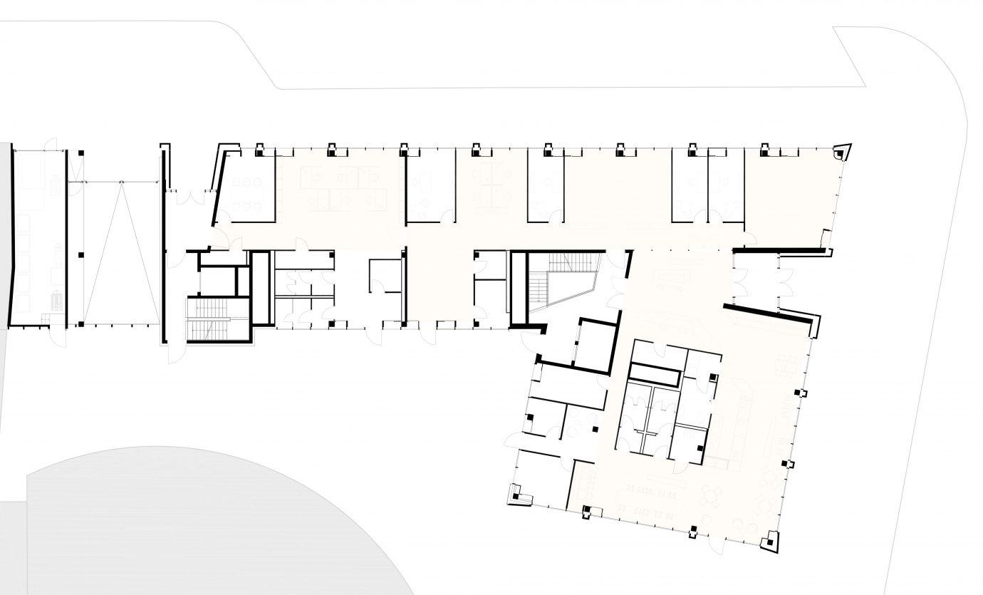 Das Grundstück befindet sich am Rande des historischen Wiesenviertels an der Straßenkreuzung Pettenkofer- / Goethestraße und bildet die Schnittstelle zu den angrenzenden Stadtteilen. Das Gelände hat keinen maßgeblichen Höhenverlauf und ist geprägt durch die Anbindung an die öffentlichen Flächen. Der winkelförmige Baukörper bildet entlang der Pettenkofer- / Goethestraße klare Raumkanten und schafft eine eindeutige Adressbildung mit der Neugestaltung der Innenhofflächen.