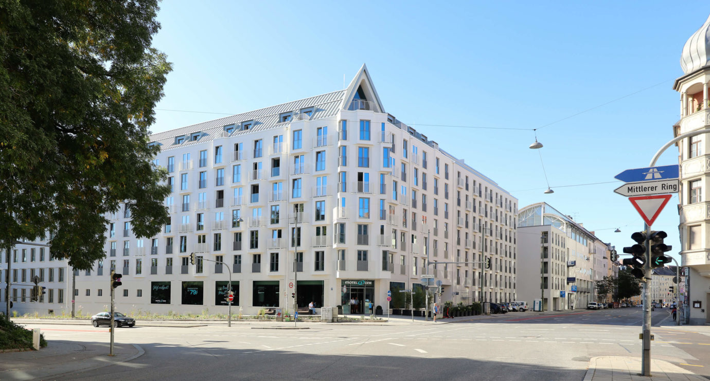 Das Objekt besteht aus zwei zusammenhängenden Gebäudeteilen und umfasst insgesamt 120 ein- bis Vier-Zimmer-Wohnungen auf 8 Geschossen. Vom durchdacht geschnittenen Wohnstudio bis zur komfortablen Dachterrassen-Wohnung entsteht dabei eine große Bandbreite an unterschiedlichen Wohnungstypen. Sorgsam vom Verkehr abgeschirmt befindet sich im Herzen Gebäudeblocks ein ruhiger, begrünter Innenhof.