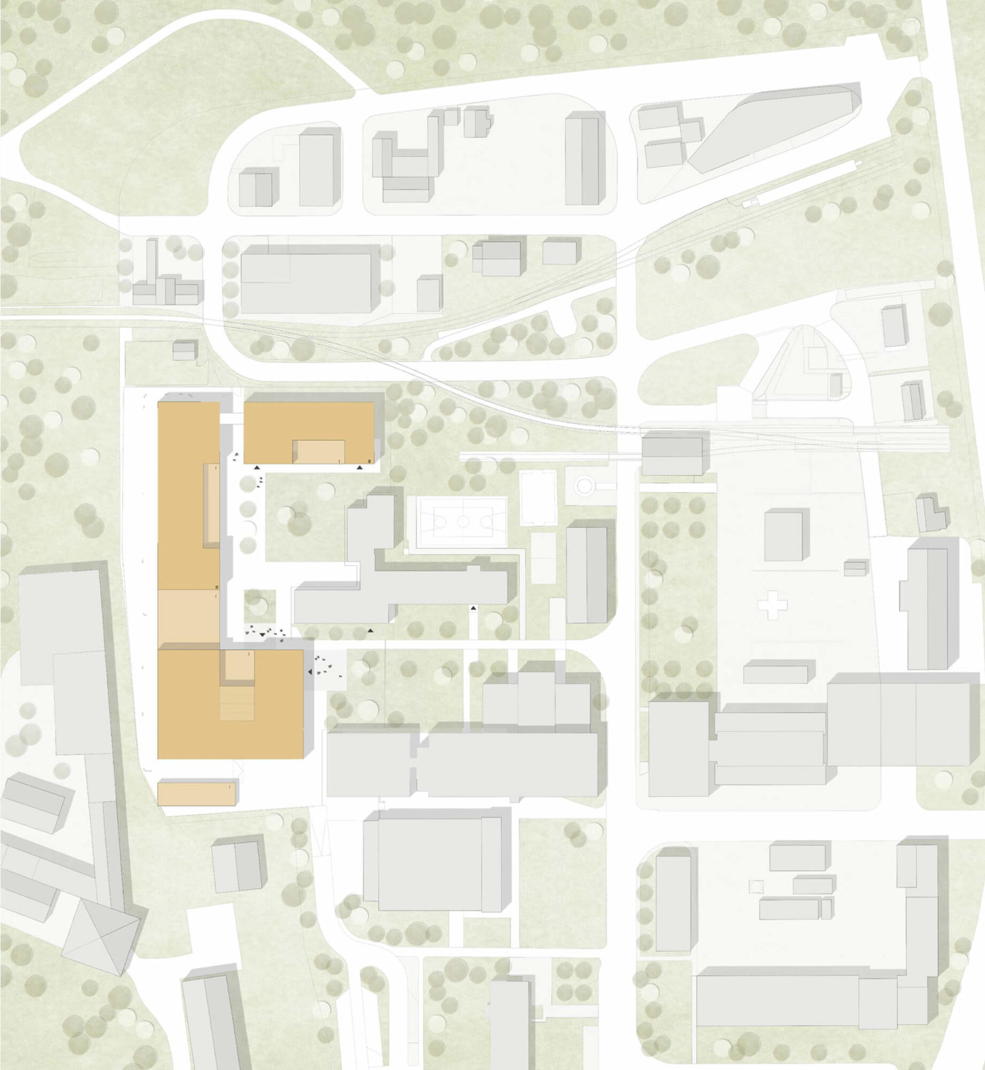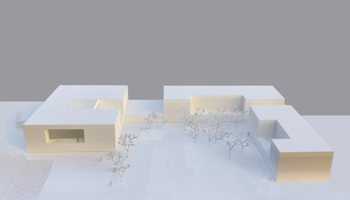 Der Entwurf sieht drei miteinander verbundene Baukörper vor, die sich durch ihre Positionierung geschickt in die Umgebung einpassen.